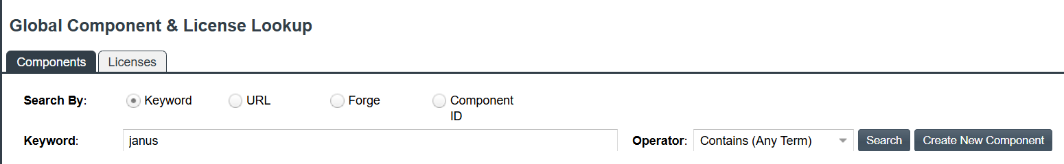 Open the Global Component & License Lookup tab, using the instructions in Accessing the Global Component & License Lookup Feature.